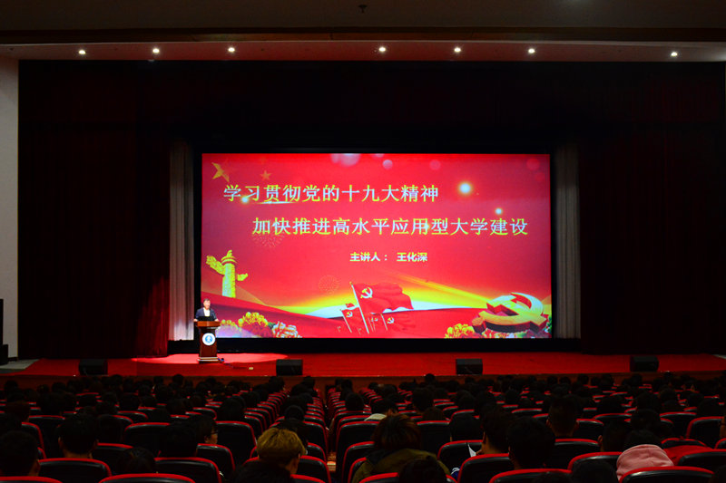 为深入学习贯彻党的十九大精神,11月1日下午4点,校长讲形势政策课暨第十五期入党积极分子党的十九大精神专题讲座在天佑会堂成功举办。德赢官网院长、党委书记王化深作了题为《学习贯彻党的十九大精神,加快推进应用型大学建设》的专题讲座。德赢官网党委副书记魏炜,团委书记黄璐璐、相关职能处室教师以及第十五期入党积极分子、学生代表共同参加了此次讲座。此次专题讲座由团委书记黄璐璐主持。