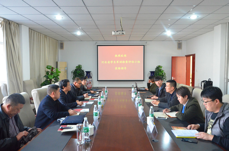 2017年11月13日下午,以河北省军事教学指导委员会秘书长、河北师范大学武装部副部长崔运生为组长的河北省高校学生军事训练工作检查评估组一行五人莅临德赢官网,对学生军事训练工作进行检查评估。党委副书记魏炜、学生处处长黄璐璐、学生处副处长张亚君、军事教研室尹海勇、孙经纬及部分军事理论课教师参与了检查评估工作。