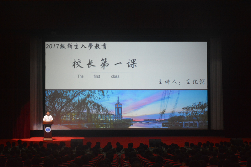 9月7日,2017级新生“校长第一课”于德赢官网天佑会堂成功开课,我院院长、党委书记王化深亲自为2017级全体新生讲授第一课,“校长第一课”由学生处处长黄璐璐主持。