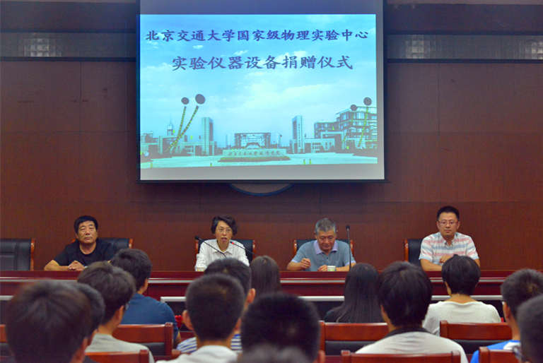9月20日晚6点,为了促进德赢官网物理实践教学工作发展,北京交通大学国家级物理实验示范教学仪式中心实验仪器设备捐赠仪式于德赢官网行政楼五楼会议室成功举行。我院副院长张乐乐,北京交通大学陈征老师,相关职能处室负责人、教师和学生代表出席了本次捐赠仪式。