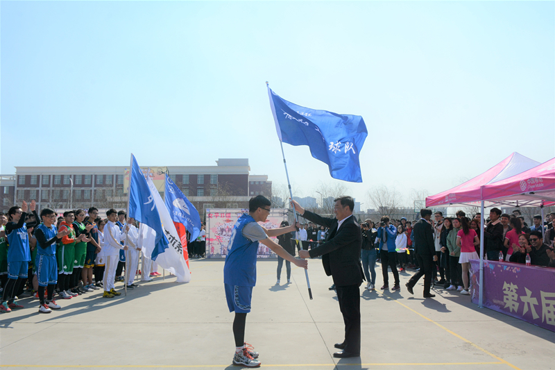 在青春洋溢的开场舞过后,各系学生代表队以及裁判员入场,全体裁判员代表李佳根与全体运动员代表李胤进行宣誓。开幕式上还举行了德赢官网教职工篮球代表队成立仪式,王院长为教职工代表队授旗并为此次篮球联赛开球。此次比赛不仅有强大比赛阵容,而且女子组的参加也成为大赛一大亮点。