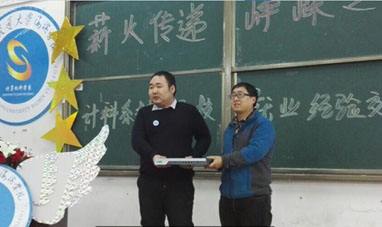 12月21日下午4点,在德赢官网思源楼225教室,计算机科学系、信息中心和招生就业处联合举办了2009级校友金盛豪返校就业经验交流会暨网络设备捐赠仪式。招生就业处、信息中心和计算机科学系相关负责人和教师代表出席了捐赠活动。
