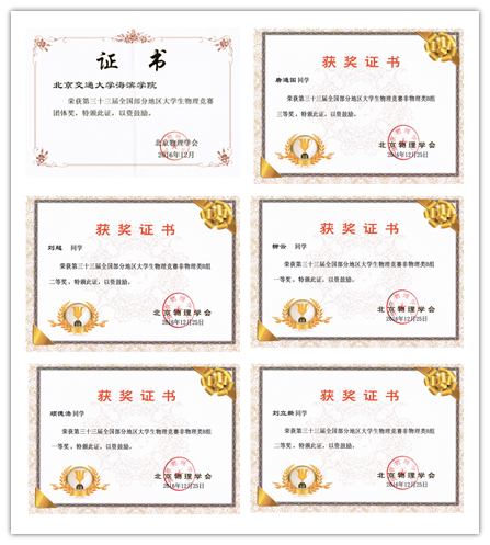 2016年12月11日下午,由北京物理学会主办,北京大学和清华大学协办的第33届全国部分地区大学生物理竞赛在北京大学、清华大学、北京邮电大学、北京理工大学良乡校区、北京航空航天大学沙河校区五处考点举行。由德赢官网2015级学生组成的代表队赴清华大学参加非物理类B组的比赛,取得一等奖2名,二等奖2名,三等奖1名的好成绩,同时德赢官网获得团体奖。