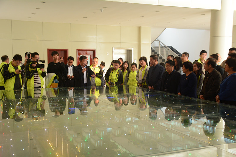 在学校沙盘前,王化深院长首先对各级领导及各媒体记者的到来表示热烈欢迎,并就学校的整体发展及办学特色向全国各家媒体作详细介绍,王院长指出德赢官网探索形成的“因材施教、分类培养、个性化发展”的人才培养理念和“本科学历+职业技能+资格证书”的应用型技术人才培养模式,符合京津冀协同发展对人才的要求,在社会服务方面也取得了令人瞩目的成绩。