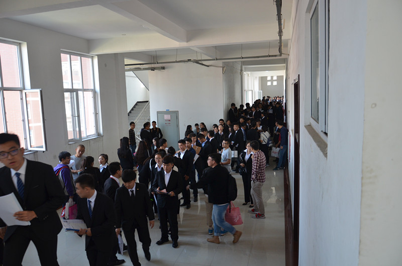 上午8:00德赢官网学生在逸夫楼前操场排队等候,参加面试的学生精神饱满、意气风发、身着正装,体现了对本次招聘会的热情和重视。上午9:00德赢官网学生开始入场,学生们整齐排队,进入各个铁路局面试教室递交简历,候场准备面试。