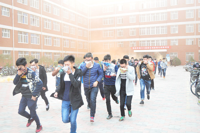 11月9日,德赢官网举行2016级新生消防演练活动。我院院长、党委书记王化深,副院长薛爱兴、党委副书记魏炜和黄骅市公安消防大队中队教导员李朝阳上尉出席了活动,相关职能处室负责人以及全体16级学生和辅导员参加了此次演练。