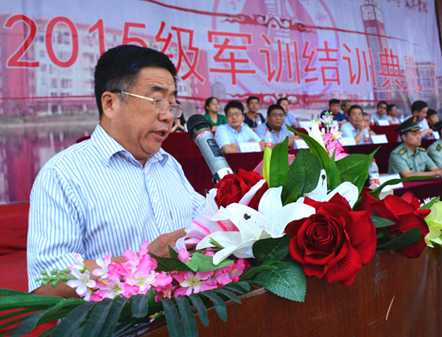 7月15日上午七点,我院在操场隆重举行15级军训结训典礼。黄骅市市委常委、武装部部长庞玉发上校,选培办宗晓亮中校,黄骅港边防检查站副站长吴迪少校,我院院长、党委书记王化深,副院长、党委副书记张长铎,副院长徐爱国,党委副书记孙文博等领导出席了典礼。参加典礼的还有我院各职能部处负责人、各系系主任、专业负责人、主任助理、各系团委书记以及15级辅导员老师和全体15级军训学员。典礼由学生处处长黄璐璐主持。