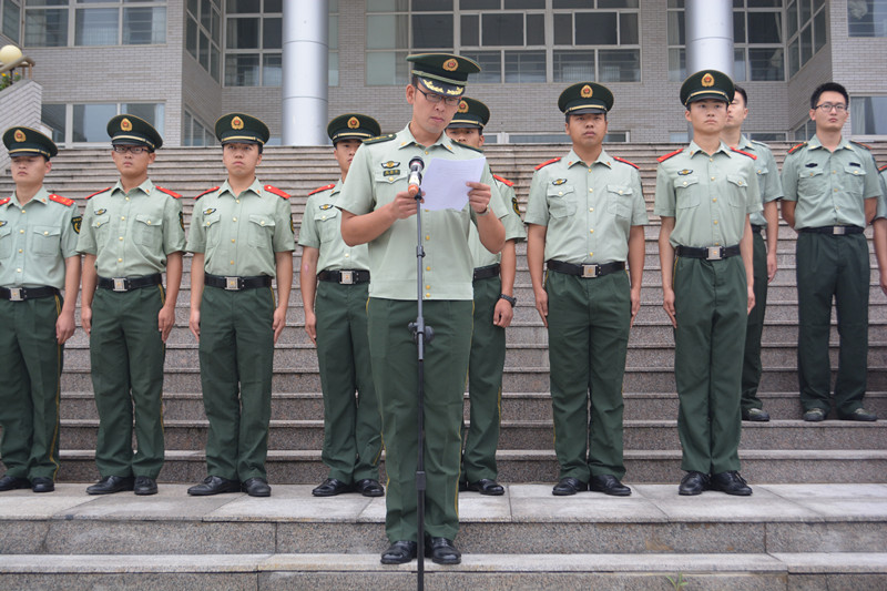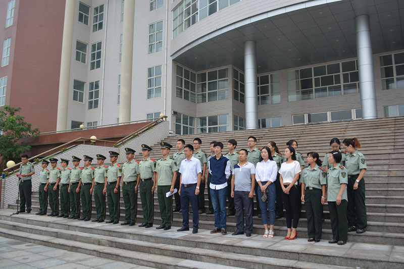 2015年9月5日上午8:00,我院14级军训小教官结训典礼在图书馆前成功举行。我院党委副书记孙文博、驻渤海新区黄骅边防检查站张晨宇上尉、各系团委书记、新生辅导员以及9名边检站武警教官参加本次结训典礼。典礼由学生处王庆松老师主持召开。