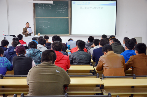 3月19日上午,我院思源教学楼210教室里气氛活跃,来自车辆工程专业1301、1302班的同学正在上《材料力学》专业课。讲台上这位和蔼可亲的主讲教师是来自葡萄牙里斯本理工大学的黎斌教授。