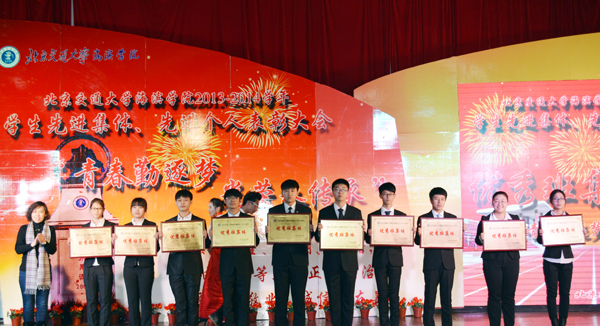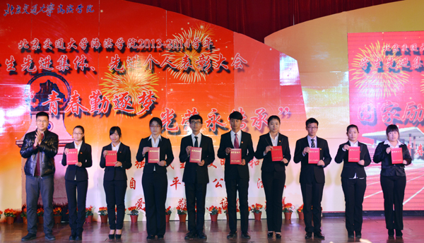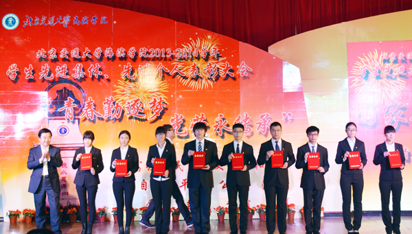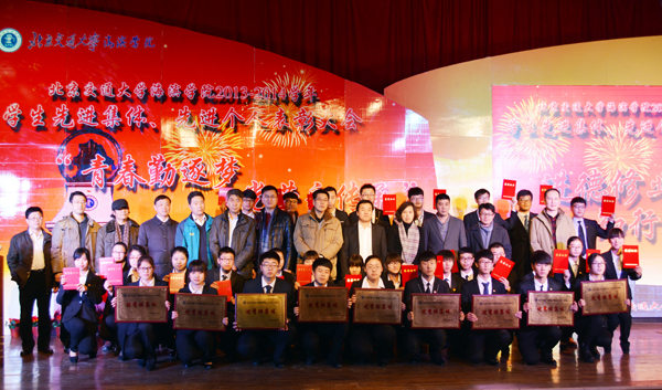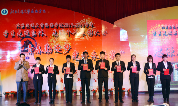 2015年1月3日晚6:30,以“青春勤逐梦,光荣永传承”为主题的我院2013-2014学年学生先进集体、先进个人表彰大会在实验楼报告厅召开。我院执行院长王大勇、副院长薛爱兴、副书记孙文博、副院长张乐乐、副院长徐爱国以及各相关单位负责人出席表彰大会。我院全体辅导员及获奖学生代表参加表彰大会。