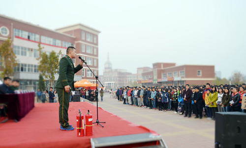 最后,王大勇执行院长作总结讲话。王院长首先代表学院向黄骅市公安消防大队对本次活动的大力支持表示衷心感谢,并从增强忧患意识、规范日常行为、共建平安校园等方面对全院师生提出具体要求。