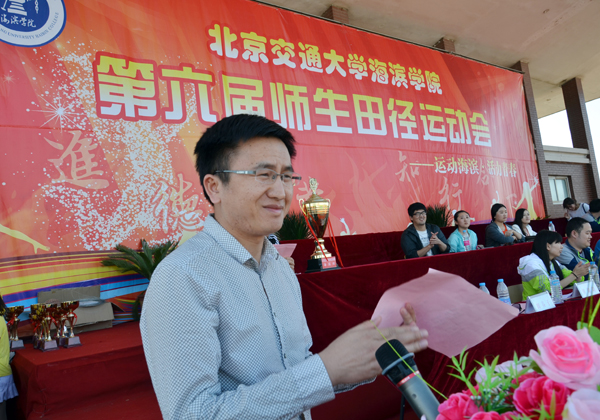 5月12日下午四点,北京交通大学海滨学院第六届田径运动会闭幕式在学院体育场举行。院领导徐维祥、孙文博以及各相关单位负责人出席闭幕式。闭幕式由基础教学部副主任田春子主持。