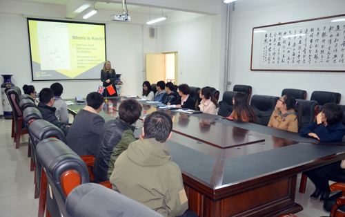 下午,在行政楼二楼会议室,Liza Rodger 女士与我院有意向出国攻读硕士研究生的学生代表进行了面对面宣讲与交流。Liza Rodger 女士向同学们全面介绍了英国基尔大学的基本情况特别是留学生的学习和生活情况,并就相关问题现场回答了学生咨询。