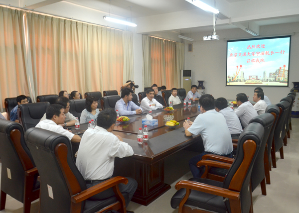 9月7日上午,北京交通大学宁滨校长带领各学院、各职能部处负责人一行19人莅临我院视察指导工作,并出席我院2013-2014学年开学典礼暨建院五周年庆祝大会。北京交通大学党委副书记、我院院长高福廷,执行院长王大勇,副院长张长铎、贾怀义、徐维祥陪同视察。