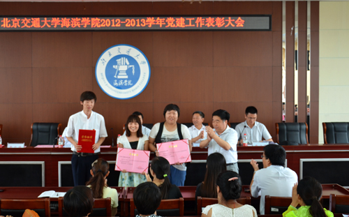王大勇执行院长宣布了《中共北京交通大学海滨学院委员会关于对学院党建工作先进单位和先进个人予以表彰奖励的决定》,并宣读了受表彰的单位和个人名单。