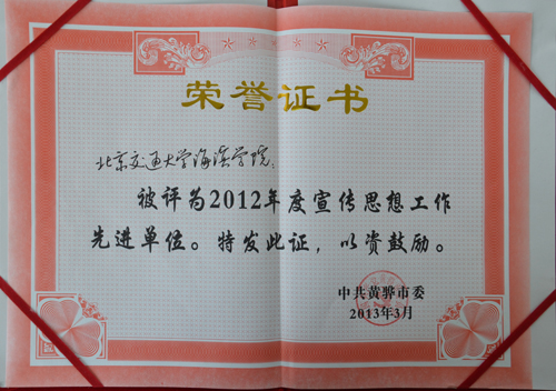 近日,中共黄骅市委印发《关于表彰2012年度宣传文化工作先进单位、先进个人的通报》,对在全市宣传文化工作中做出突出贡献的先进单位、先进个人予以表彰。我院被评为年度宣传思想工作先进单位。
