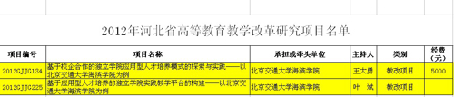 我院申报2012年河北省高等教育教学改革研究项目喜获成功