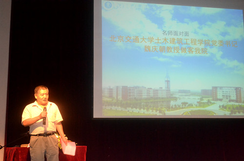 9月8日晚上,北京交通大学土木建筑工程学院党委书记、博士生导师魏庆朝教授在实验楼报告厅,为我院土木工程系2012级全体同学作了一场题为《土木与文明》的专题报告。王大勇执行院长出席报告会并致辞,土木工程系全体教师、辅导员以及2012级新同学参加了本次报告会。报告会由土木工程系系主任陈凡丁主持。