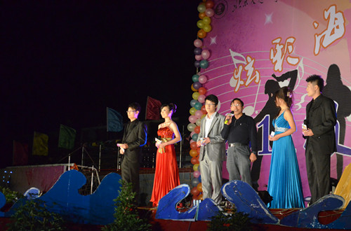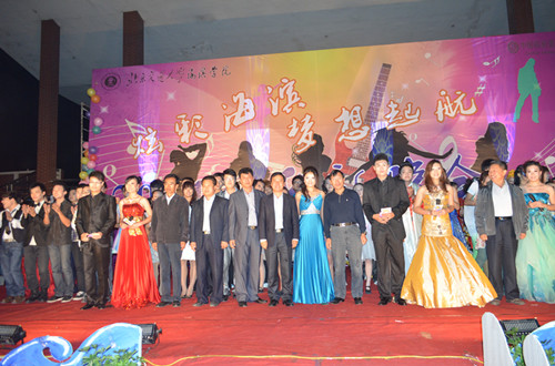 为迎接我院2011级大一新生,弘扬我院综艺文化,彰显大学生风采。10月20日晚,由学生会主办,艺术团协办的以“炫彩海滨,梦想起航”为主题的2011级迎新晚会在我院操场隆重举行。参加本次晚会的有黄骅市企业家代表,我院院长高福廷,执行院长王大勇,书记张平之,副院长张长铎、贾怀义、吴子成、周俞波以及各部门领导、老师。