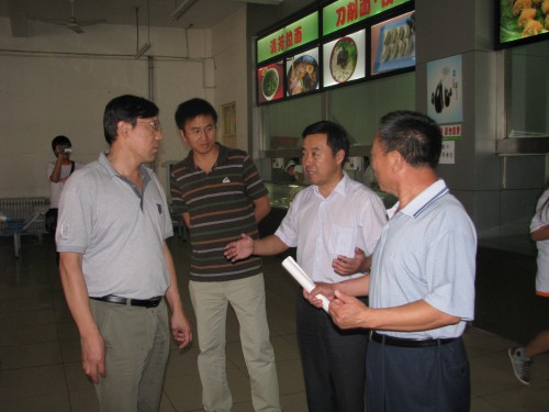 赵主任向我院传达了《关于对2011年高等学校新生入学生活安排情况进行检查的通知》的有关精神,王院长向赵主任一行汇报了我院后勤服务“绿色通道”设立、一期及二期学生公寓、食堂等设施的安全、卫生、质量等情况。汇报结束后,赵主任还在王院长等领导的陪同下实地考察了我院一期、二期食堂和二期学生公寓,并参观了我院校园。