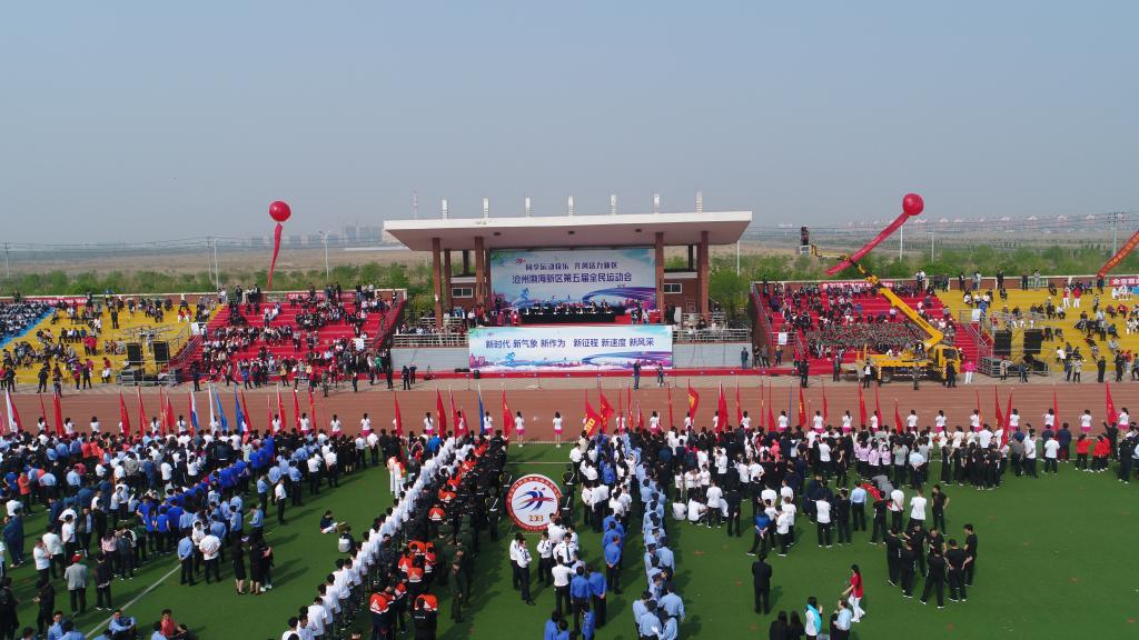 4月26日上午,渤海新区第五届全民运动会在德赢官网隆重开幕。德赢官网王化深院长受邀参加了开幕式并在主席台就座。来自新区各界群众2000余人共同观看了开幕式盛况。开幕仪式由渤海新区党工委委员、黄骅市委书记朱春燕主持。