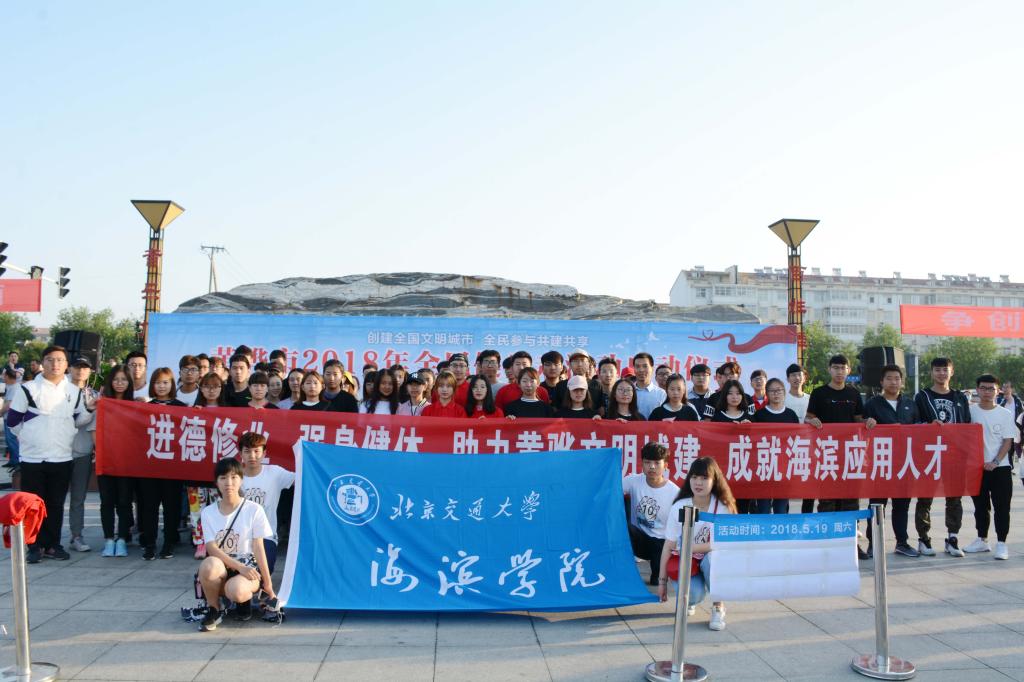 5月19日上午,德赢官网师生代表共计68人参加了黄骅市第三届以“创建全国文明城市·全民参与共建共享”为主题的全民健步走活动,全体参赛人员身穿印有“文明黄骅·精彩有我”的T恤开始参加比赛。