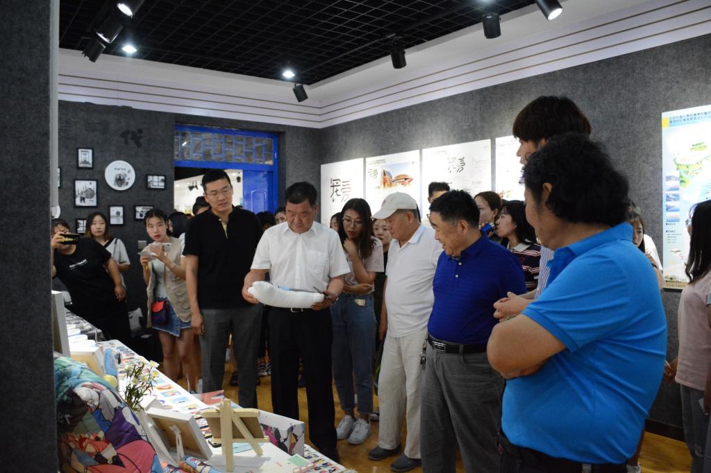 5月29日,德赢官网艺术系2014级毕业设计作品展隆重开幕。院长王化深,副院长、副书记张长铎,副院长张乐乐,副书记魏炜出席并参观本次毕业设计作品展。艺术系主任韩翔为各位领导详细介绍各个作品的创作理念。