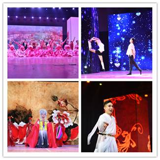 在开场舞《生日快乐》中,演员们载歌且舞表达出对海滨学院建校10周年的喜悦之情。
