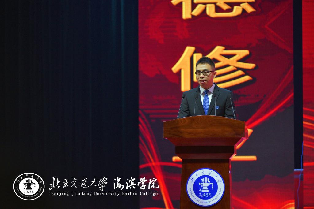 北京交通大学副校长关忠良首先代表北京交通大学向十岁芳华的海滨学院致以节日的问候,向德赢官网领导班子以及教职工和海滨学子致以祝贺。他提出三点希望:一是希望海滨学院继续坚持立德树人的根本任务,认真总结办学经验,将自身打造成为名副其实的人才培养高地。二是希望海滨教职工队伍继续做好传道授业,努力承载起传播知识、传播真理、传播思想、塑造灵魂、塑造生命、塑造新人的时代重任。三是希望海滨学子响应国家号召,珍惜时光,努力成为德智体美劳全面发展的佼佼者,努力成为社会主义合格的建设者和接班人。他还表示,北京交通大学将一如继往地关注关心和支持海滨学院的发展,助推海滨学院各项事业的新跨越。