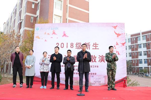 11月7日下午,为进一步增强德赢官网师生火灾防范意识和逃生自救能力。德赢官网于一期食堂广场南侧举行2018级新生消防逃生疏散演习活动。德赢官网党委副书记魏炜,黄骅市消防大队参谋长李朝阳,学生处副处长翟砚辉,后勤服务中心副主任孙丽华出席本次活动,相关学院副院长,各院团委书记、18级新生辅导员和18级全体新生参加了此次疏散演习。此次活动由安全工作处处长张海旺主持。