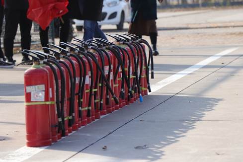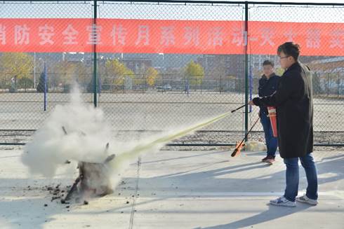最后,参加活动的教职员工在安全工作处的配合与指导下,先后进行了灭火器、灭火毯灭火实地演练活动,通过实际操作使后勤工作人员充分掌握了使用灭火器的操作要领,懂得了火险突发事件的处置步骤,明白了消防安全工作的意义。