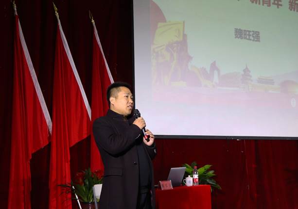 魏旺强书记从上海进口博览会的成功举办展示了中国实力谈起,结合国内外的形势,党的十九大的战略部署,中国进入新时代的历史定位,谈到中国的新征程、新目标为当代大学生赋予的新使命。