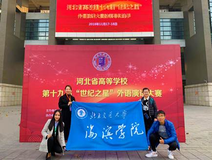 2018年11月17-18日,河北省高等学校第十九届“世纪之星”外语演讲大赛决赛在河北师范大学举行。德赢官网外国语学院贾世娇和郭玉姿带领的参赛队伍参加了本次比赛。来自全省103所高校的411名选手参加了本次比赛。经过两天比赛的激烈角逐,层层选拔,最终德赢官网胡景雯获青年教师组二等奖,王璐瑶获青年教师组三等奖;英语专业2016级学生林佳慧获英语专业组三等奖,电气工程及自动化专业2017级学生张昊文、财务管理专业2017级学生刘博获得非专业组三等奖。