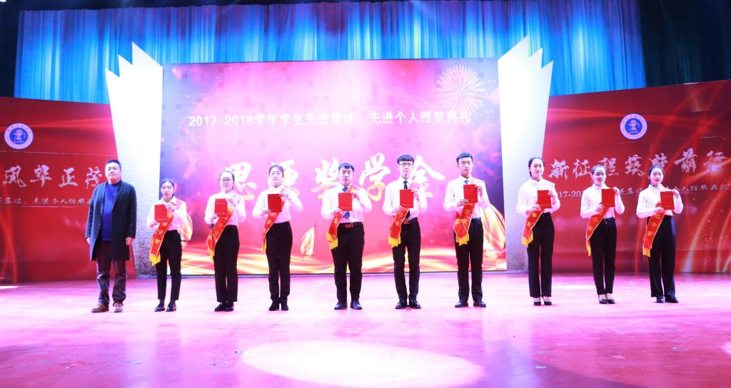 12月19日下午,以“新青年风华正茂·新征程筑梦前行”为主题的2017-2018学年学生先进集体、先进个人颁奖典礼在天佑会堂隆重举行。校长王化深,党委书记魏旺强,副校长、副书记张长铎,党委副书记魏炜出席本次大会,各院系、各职能处室负责人,教师代表及部分学生参加本次大会。