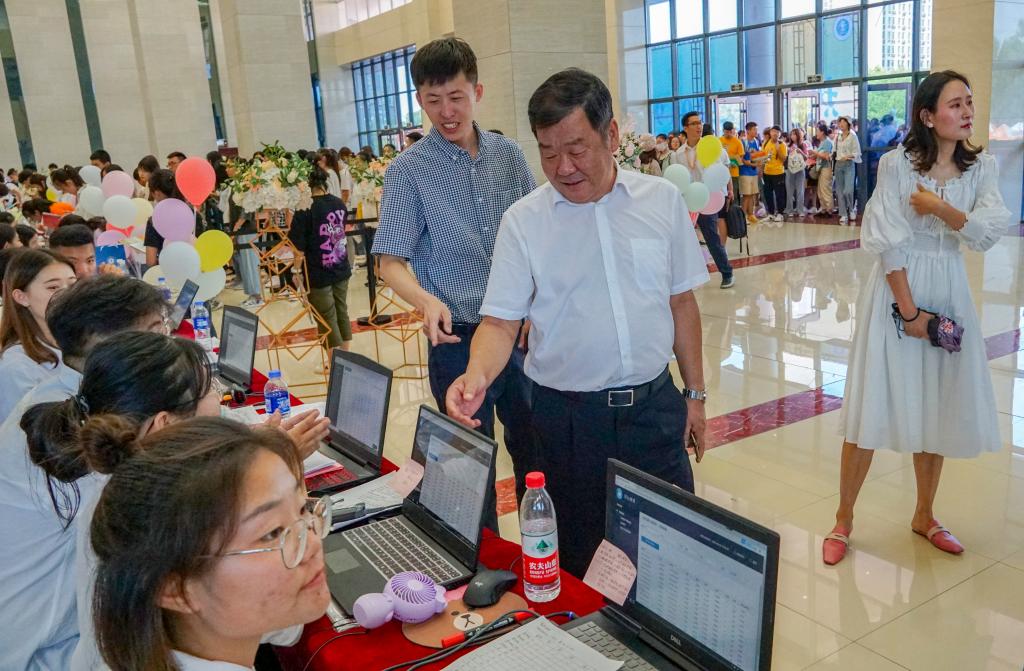 在新生报到现场,不乏可以看到德赢官网各学院鳞次栉比的报到点、各部门设立的咨询处以及随处可见的志愿者服务站点。德赢官网迎新教师细致耐心地向新生及家长答疑解惑、各青年志愿者频频穿梭于校园各处。2019级滨果儿如期而至,海滨今后与你一同砥砺前行。