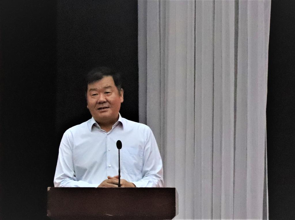 “2019年度河北师德标兵” 获奖教师代表--土木建筑工程学院教师时国松上台发言,他以诙谐幽默的话语讲述了自己是如何克服备课的疲劳和调动学生课堂上的积极性的独到方法,希望与在座教师共勉,互帮互助。