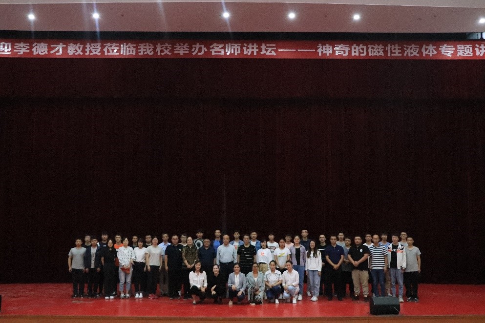 李德才教授以航空航天、核电军工、民用机械等磁性流体密封的广泛应用做引,全面介绍了磁性液体的概念、制备方法和常用磁性液体的物理化学性能,重点分析了磁性流体力学特性及其在密封中的应用。李教授诙谐幽默的语言将磁性液体的应用深入浅出地展现在大家面前,赢得了台下师生热烈的掌声。最后,李教授与德赢官网学生进行了现场互动交流。