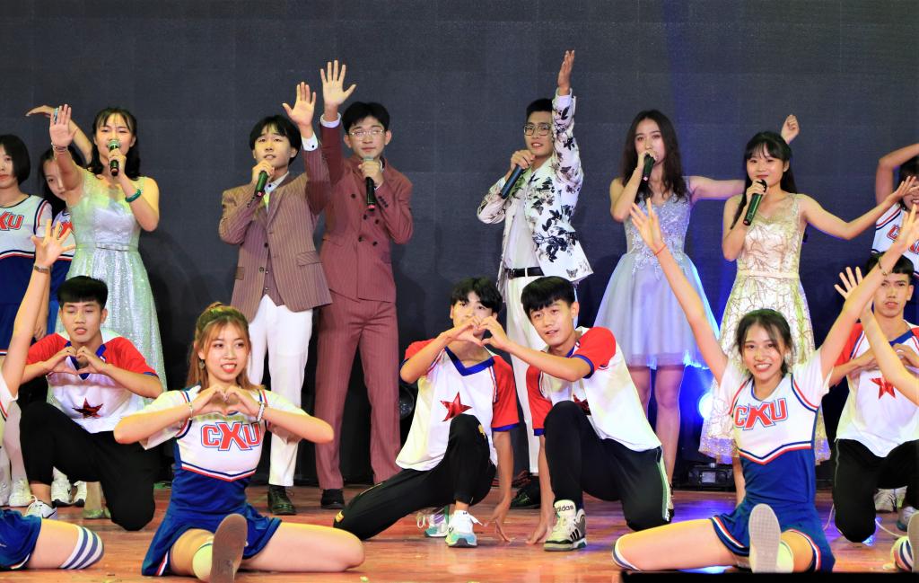 开场歌舞《天天向上》拉开晚会帷幕,海滨青年载歌载舞,表达对建国七十周年的庆祝和对海滨2019级新生到来的喜悦。