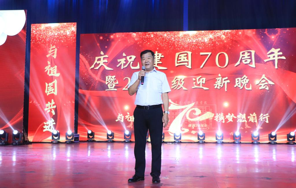 “欢庆祖国70周年华诞,欢迎2019级新生到来。”欢歌笑语过后,德赢官网校长王化深上台致辞。中国走到今天,是中国人民一代代建起来的,中国从站起来、富起来、强起来,离不开每个人的辛苦付出。王校长号召同学们要努力学习、拼搏奉献,共同树立国家和民族同欢乐、共命运、齐奋斗的远大梦想。