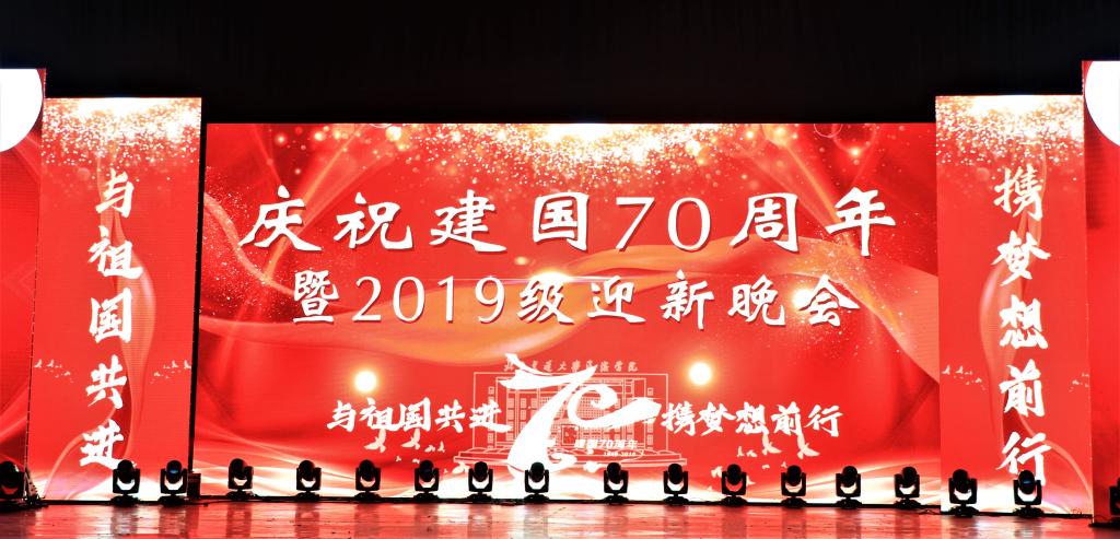 9月26日晚,德赢官网以“与祖国共进,携梦想前行”为主题的庆祝建国七十周年暨2019级迎新晚会在天佑会堂隆重举行。同庆祖国七十周年蒸蒸日上,共迎海滨异军突起勃勃生机。德赢官网校长王化深,党委副书记魏炜,各二级学院(系)以及各职能(部)处室负责人出席本次活动。