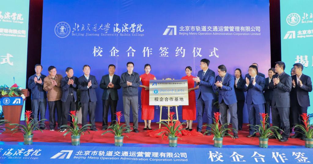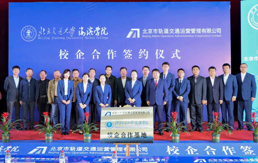 德赢官网副校长徐爱国和北京市轨道交通运营管理有限公司总经理助理孙冠卓上台举行揭牌仪式