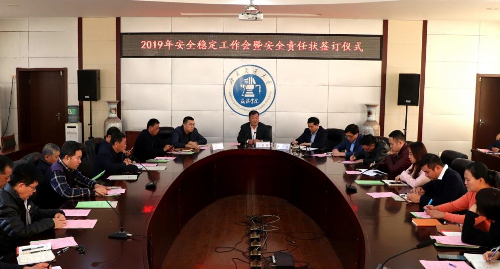 11月14日下午,德赢官网2019年安全稳定工作会暨安全责任状签订仪式于行政楼B512会议室成功举行。德赢官网校长王化深,党委书记魏旺强,党委副书记魏炜,各二级学院(系)、及各职能(部)处室负责人出席会议。