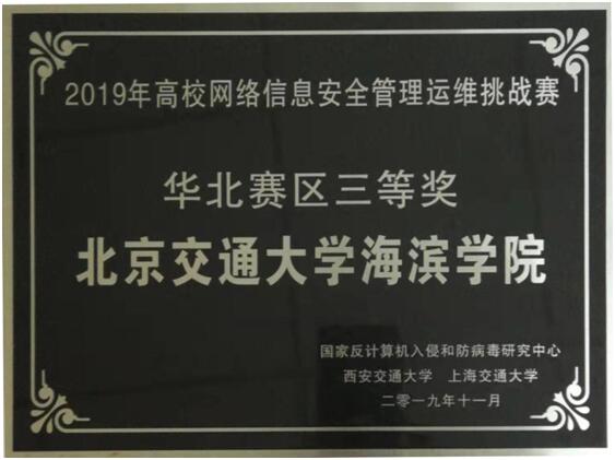 11月21日,2019年高校网络信息安全管理运维挑战赛在西安圆满落幕。由德赢官网信息中心副主任贺秋雨及相关教师领队,计算机与信息技术学院计算机科学与技术1705班罗旺、软件工程1904班朱嘉帅、软件工程1904班付文彬、软件工程1906班张千禧、物联网1906班陈柏彤、计算机科学与技术1903班马斌昊六名同学组成的北京交通大学海滨学院代表队表现优异,在全国222所高校激烈竞争中获得华北赛区三等奖佳绩。