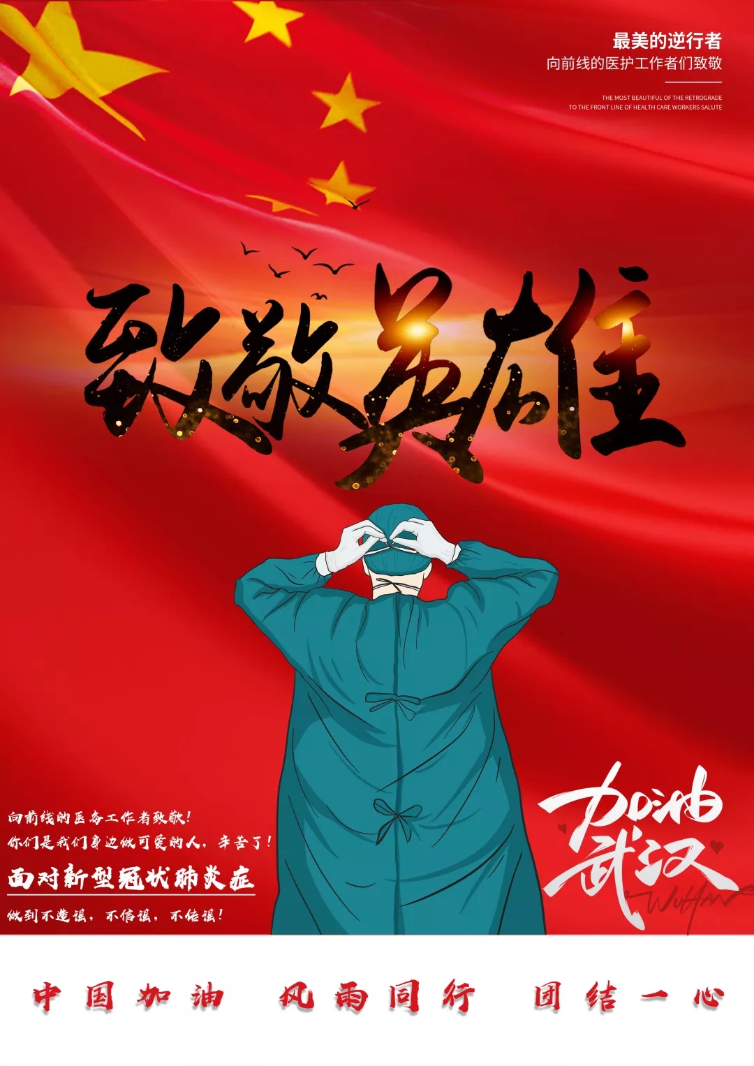 致敬!致敬!致敬所有在武汉抗疫一线的工作人员!你们是战士,满腔热血,奋勇向前,尽显中华之魂。向一线工作的战士们致敬,祝愿此次疫情早日结束。万众一心,共同抗疫!这是一场必定会胜利的“战疫”!武汉加油!中国加油!
