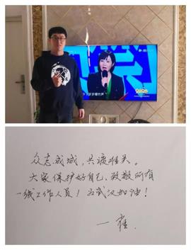 信号1805的崔智昊用短短三行文字说出了他的心声:众志成城,共渡难关。大家保护好自己,致敬所有一线工作人员!为武汉加油!