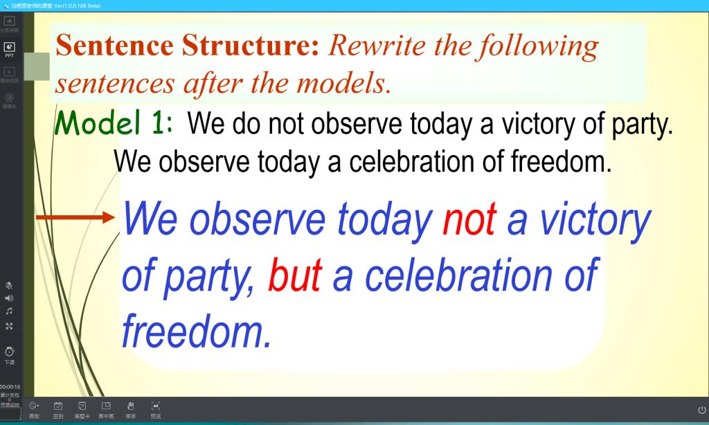 教研室教师马艳丽在开课前,对所教班级学生使用的学习工具做了调查。数据显示,64.21%的学生使用手机和ipad小屏幕学习工具。考虑到学生的视力,马老师特意推出大字号战“疫”专款PPT。为减少持续盯屏时间,她每次上课都留出10到20分钟的休息时间,同时让学生拓展耕耘“词园”,“译园”,“写园”,通过不同梯度,帮助学生拾阶而上、长善救失。