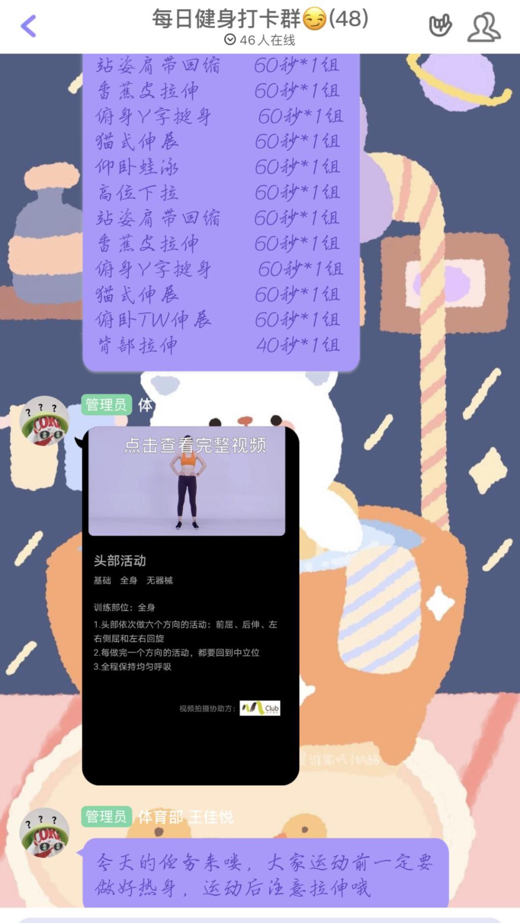 希望同学们都可以一直保持每天健身的习惯,在疫情期间依旧有一个健壮的身体,也希望疫情可以早日结束,同学们都能早日回到学校。