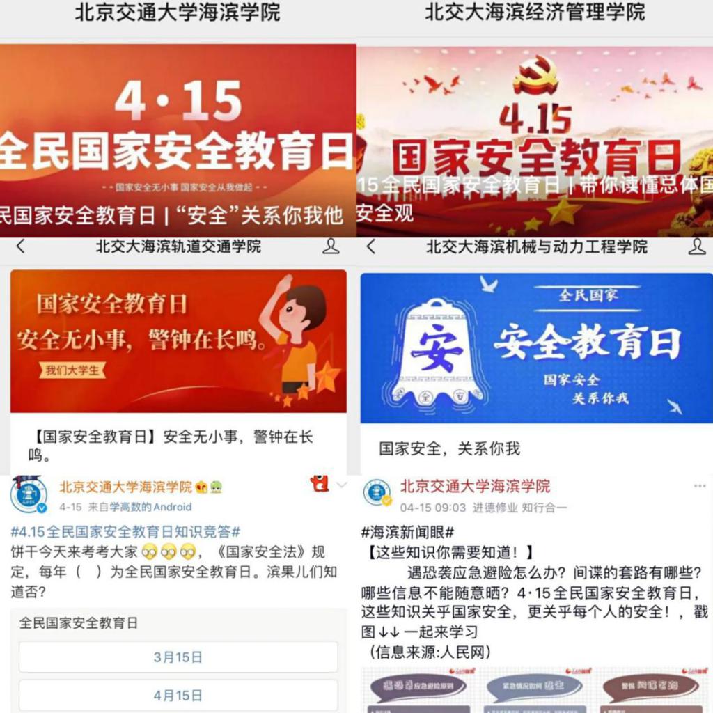 受新型冠状病毒肺炎疫情影响,德赢官网将新媒体平台作为国家安全日宣传活动主阵地,结合《中华人民共和国国家安全法》、《中华人民共和国反间谍法》、《中华人民共和国环境保护法》等相关法律,通过官方各级平台和二级院系媒体平台向学生推送国家安全知识,开展微信、微博线上答题活动,强调宣传公共卫生安全、疫情防控知识等内容,提升师生国家安全意识。