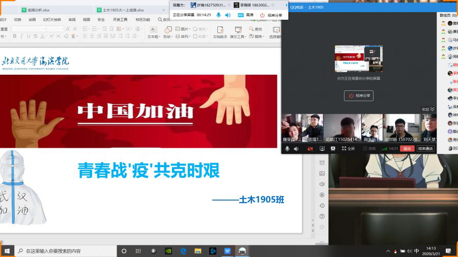 为加强学生对新型冠状病毒自我保护措施的认知,增强同学间的交流与合作,增强集体责任感与使命感,德赢官网土木建筑工程学院决定开展“青春战‘疫’,共克时艰”网络主题班会活动,各班班长积极组织全班同学开展云视频会议,带领同学们大声宣读抗“疫”承诺,宣传疫情防控知识,坚定同学们的抗“疫”决心。