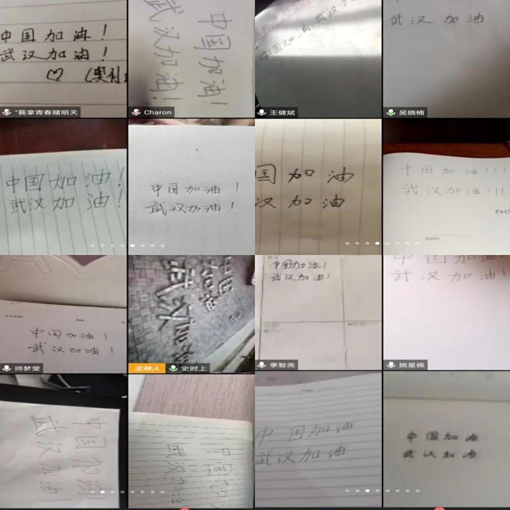 我们虽然不能面对面、手拉手,但是可以心连心、肩并肩。信号1901班同学们相隔千里,却同时执笔写下对祖国的祝愿,铿锵的字体包含着与祖国共克时艰的决心。此外,同学们还以舞传情、以声传爱,用手势舞为武汉加油、为中国加油,为奋斗在战“疫”一线的工作者们带去海滨学子的问候,为疫情防控阻击战注入阳光正能量!